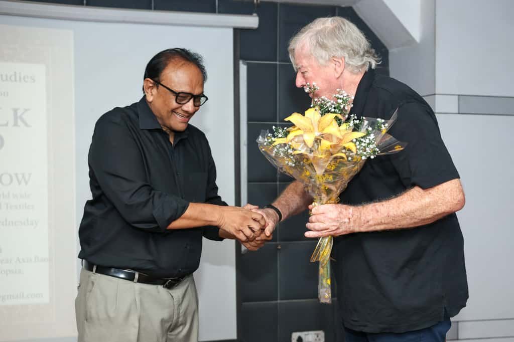 The presentation featured rare textile exhibits from John’s personal collection, including pieces from Africa, Europe, Pakistan, Afghanistan and the Far East – prominent textiles on the silk route. The audience was treated to a visual journey through the history of textiles, with Sir John sharing his expertise and experiences.