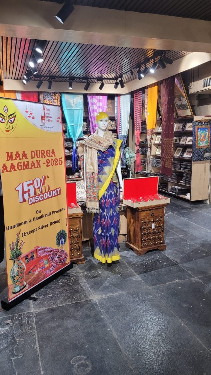 In an endeavour to celebrate and promote the Indian handicraft , this Durga Puja the Central Cottage Industries Corporation of India Ltd (CCIC) at the CCIC Emporium 7, J.L. Nehru Road, Kolkata – 700013 organises exhibition cum sale of handicraft and handloom “MAA DURGA AAGMAN-2025” showcasing such emerging Indian handloom and handicraft products. The exhibition will be open till 31st October, 2025 (10:30 AM – 7:30 PM). Discount of 15% on entire range of handicraft and handloom except silver Items.