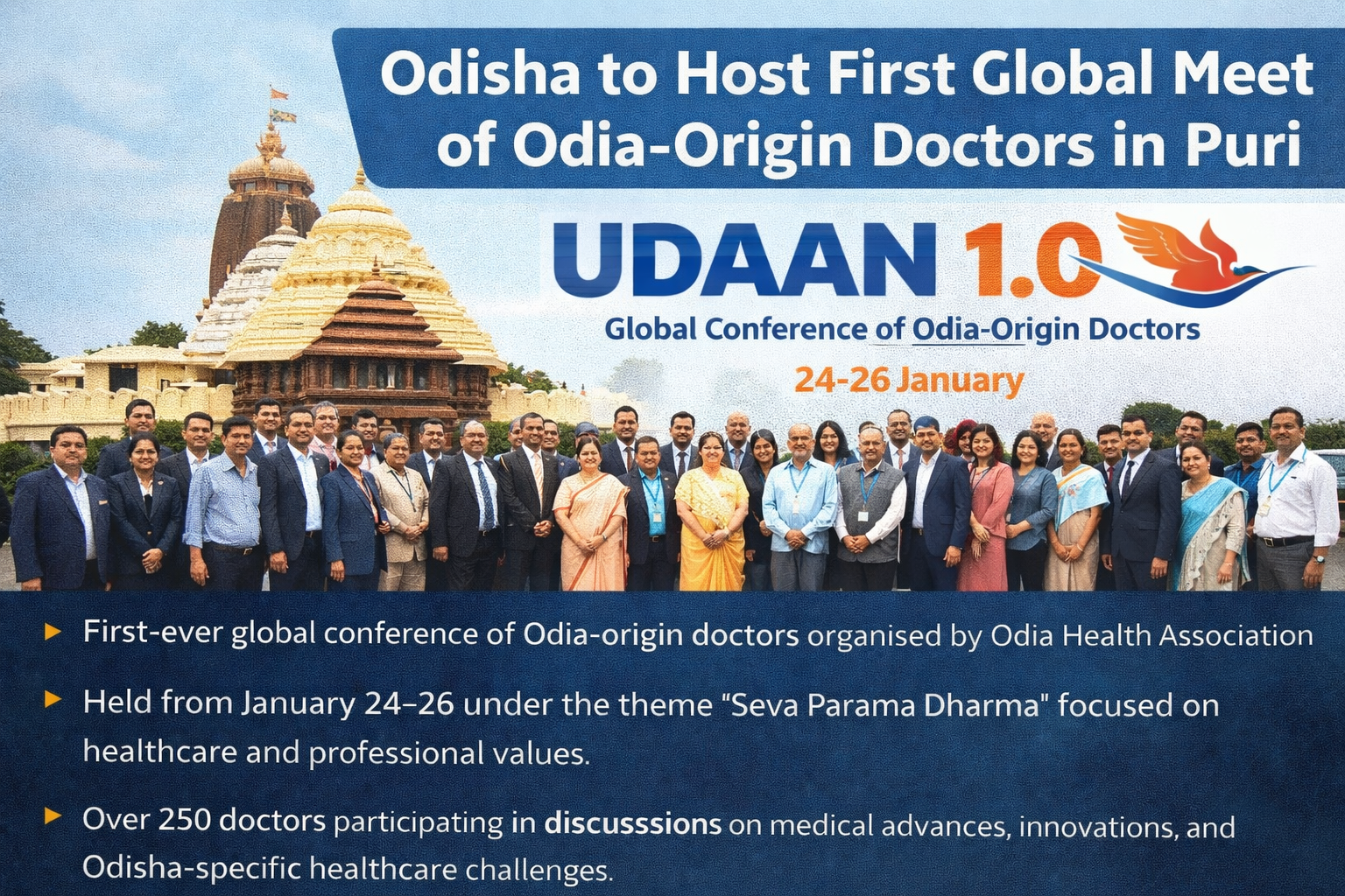 Bhubaneswar: Puri is set to host the first-ever global meeting of doctors of Odia origin from January 24 to 26, marking a significant milestone for the state’s medical fraternity. The three-day international conference, titled UDAAN 1.0, is being organised by the Odia Health Association–Global and will bring together medical professionals from India and across the world.