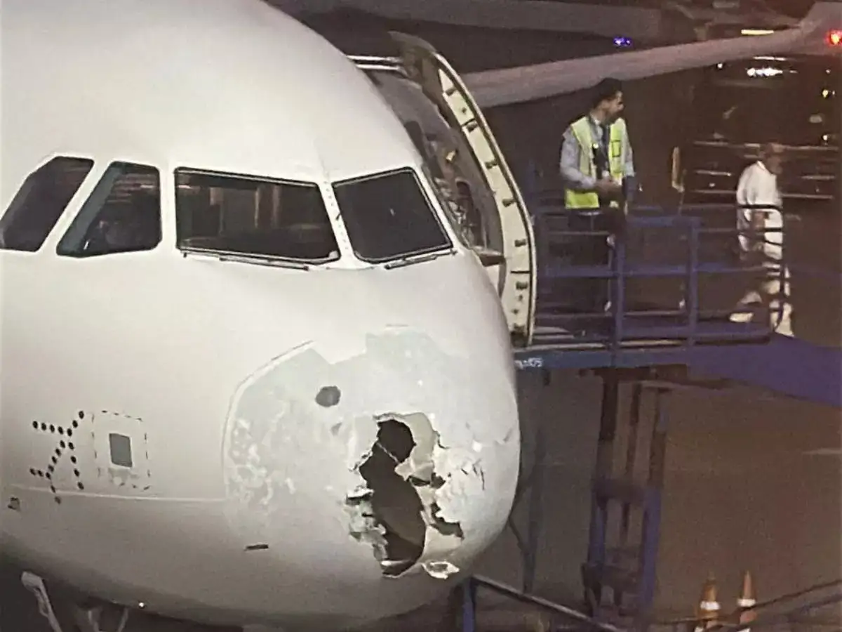 A Srinagar bound Indigo aircraft, boarded with passengers, has got the nose tip damaged and the pilots made a hasty landing in the airport due to a life threatening hailstorm and bad weather conditions. The passengers on board included the Members of Parliament from Trinamool Congress described the experience as near death experience. Despite the worst weather conditions and the noncooperation of the neighboring country, kudos to the expertise of our pilots who were able to land the plane safely in the Srinagar airport without ant injury to any of the passengers on board.